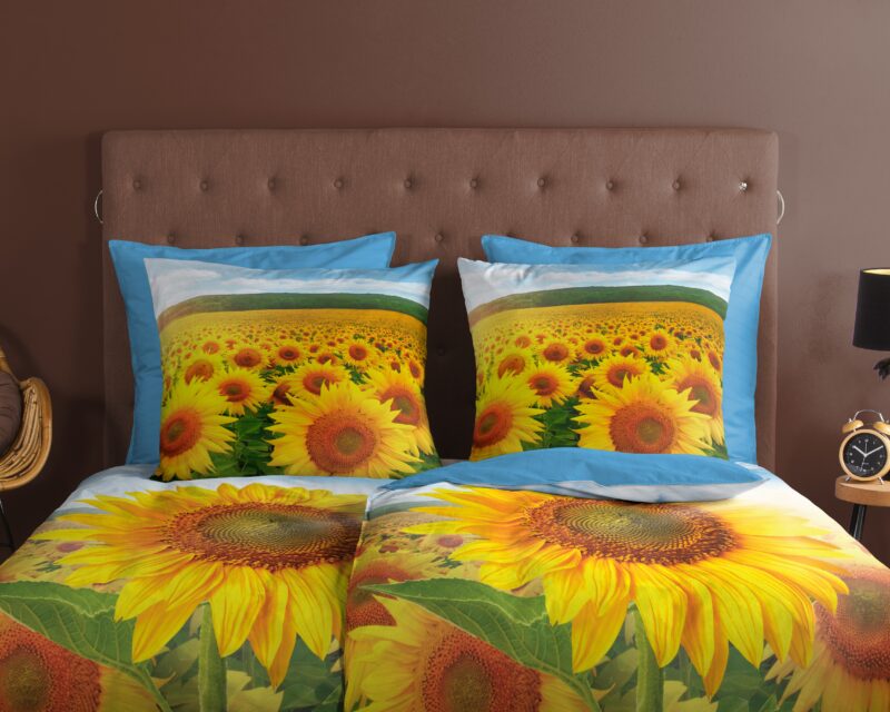Dekbedovertrek “Sonne” van Good Morning met zonnebloemen, in de kleur “Multi” is gemaakt van 100% katoen. Deze kwaliteit is ademend, vochtabsorberend en voelt zacht en soepel aan. Dit mooie dekbedovertrek fleurt iedere slaapkamer op en is geschikt voor ieder jaargetijde. Het katoenen dekbedovertrek is heerlijk koel in de zomer en geeft warmte in de winter.