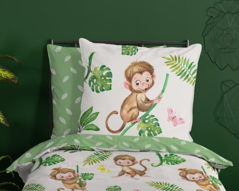 Kinderdekbedovertrek “Play” van Good Morning met apen en bladeren, in de kleur “Groen” is gemaakt van 100% katoen. Deze kwaliteit is ademend, vochtabsorberend en voelt zacht en soepel aan. Dit leuke kinderdekbedovertrek is een toevoeging aan iedere kinderkamer en is geschikt voor ieder jaargetijde. Het katoenen dekbedovertrek is heerlijk koel in de zomer en geeft warmte in de winter.