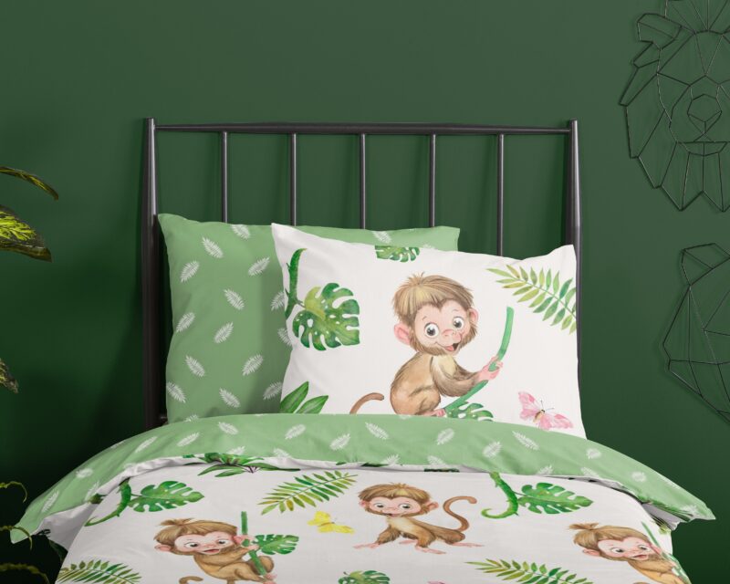 Good Morning Kinderdekbedovertrek “apen en bladeren” – Groen – (140×200/220 cm) – Katoen