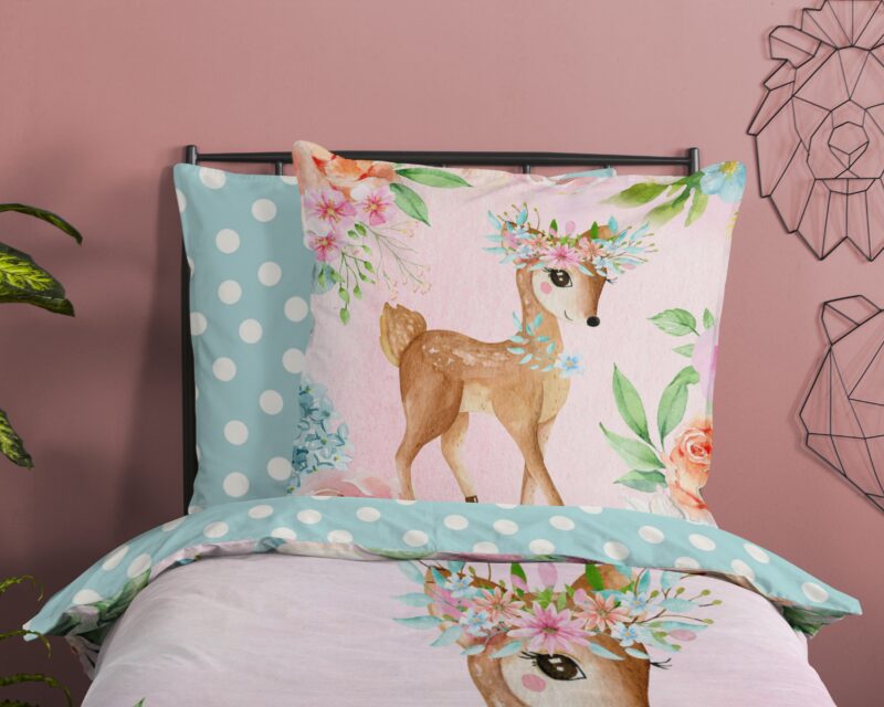 Kinderdekbedovertrek “Sweet” van Good Morning met bambi met bloemen, in de kleur “Multi” is gemaakt van 100% katoen. Deze kwaliteit is ademend, vochtabsorberend en voelt zacht en soepel aan. Dit leuke kinderdekbedovertrek is een toevoeging aan iedere kinderkamer en is geschikt voor ieder jaargetijde. Het katoenen dekbedovertrek is heerlijk koel in de zomer en geeft warmte in de winter.
