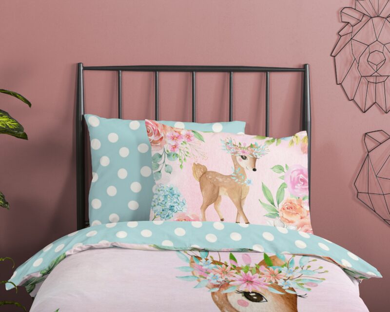 Kinderdekbedovertrek “Sweet” van Good Morning met bambi met bloemen, in de kleur “Multi” is gemaakt van 100% katoen. Deze kwaliteit is ademend, vochtabsorberend en voelt zacht en soepel aan. Dit leuke kinderdekbedovertrek is een toevoeging aan iedere kinderkamer en is geschikt voor ieder jaargetijde. Het katoenen dekbedovertrek is heerlijk koel in de zomer en geeft warmte in de winter.