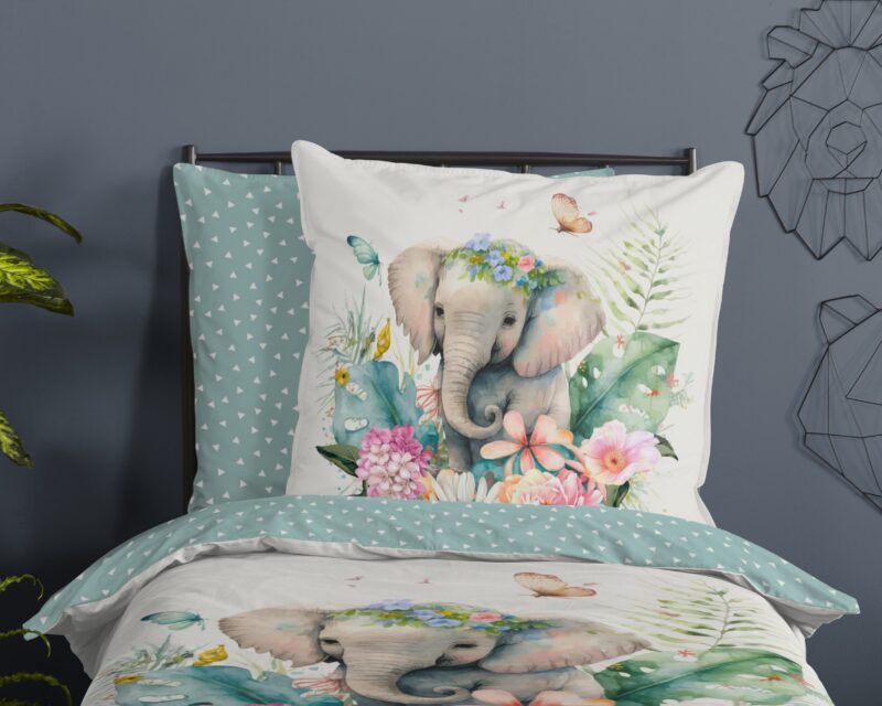 Kinderdekbedovertrek “Eli” van Good Morning met bloemen met een olifant, in de kleur “Multi” is gemaakt van 100% katoen. Deze kwaliteit is ademend, vochtabsorberend en voelt zacht en soepel aan. Dit leuke kinderdekbedovertrek is een toevoeging aan iedere kinderkamer en is geschikt voor ieder jaargetijde. Het katoenen dekbedovertrek is heerlijk koel in de zomer en geeft warmte in de winter.