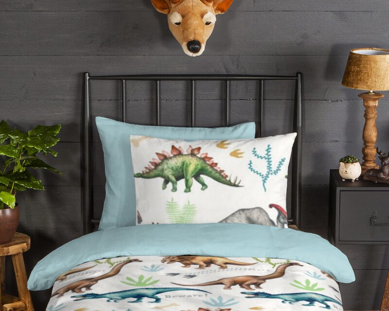 Flanellen Kinderdekbedovertrek “Dino” van Good Morning met dino’s, in de kleur “Multi” is gemaakt van 100% geruwde 100% katoen/flanel. Doordat het katoen licht opgeruwd is, ontstaat er een zacht laagje. Deze warme, zachte stof is ademend en vochtabsorberend. Dit leuke kinderdekbedovertrek is een toevoeging aan iedere kinderkamer en is uitermate geschikt voor de koude wintermaanden.