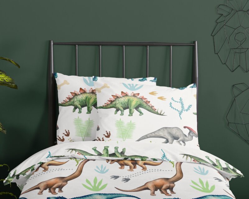 Kinderdekbedovertrek “Dino” van Good Morning met dino’s, in de kleur “Wit” is gemaakt van 100% katoen. Deze kwaliteit is ademend, vochtabsorberend en voelt zacht en soepel aan. Dit leuke kinderdekbedovertrek is een toevoeging aan iedere kinderkamer en is geschikt voor ieder jaargetijde. Het katoenen dekbedovertrek is heerlijk koel in de zomer en geeft warmte in de winter.