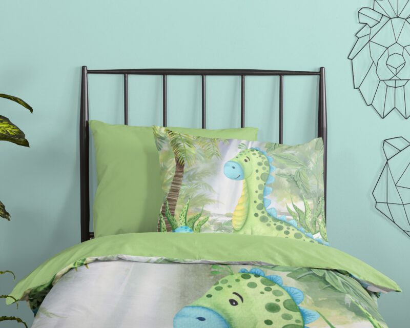 Kinderdekbedovertrek “Dani” van Good Morning met dinosaurus, in de kleur “Groen” is gemaakt van 100% katoen. Deze kwaliteit is ademend, vochtabsorberend en voelt zacht en soepel aan. Dit leuke kinderdekbedovertrek is een toevoeging aan iedere kinderkamer en is geschikt voor ieder jaargetijde. Het katoenen dekbedovertrek is heerlijk koel in de zomer en geeft warmte in de winter.