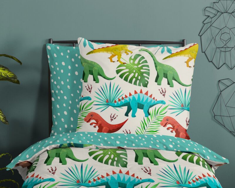 Kinderdekbedovertrek “Dinos” van Good Morning met dinosaurussen, in de kleur “Multi” is gemaakt van 100% katoen. Deze kwaliteit is ademend, vochtabsorberend en voelt zacht en soepel aan. Dit leuke kinderdekbedovertrek is een toevoeging aan iedere kinderkamer en is geschikt voor ieder jaargetijde. Het katoenen dekbedovertrek is heerlijk koel in de zomer en geeft warmte in de winter.