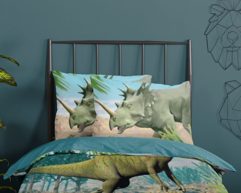 Kinderdekbedovertrek “Dino” van Good Morning met dinosaurussen, in de kleur “Multi” is gemaakt van 100% katoen. Deze kwaliteit is ademend, vochtabsorberend en voelt zacht en soepel aan. Dit leuke kinderdekbedovertrek is een toevoeging aan iedere kinderkamer en is geschikt voor ieder jaargetijde. Het katoenen dekbedovertrek is heerlijk koel in de zomer en geeft warmte in de winter.
