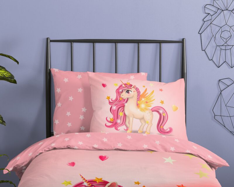 Kinderdekbedovertrek “Little” van Good Morning met eenhoorn met regenboog, in de kleur “Multi” is gemaakt van 100% katoen. Deze kwaliteit is ademend, vochtabsorberend en voelt zacht en soepel aan. Dit leuke kinderdekbedovertrek is een toevoeging aan iedere kinderkamer en is geschikt voor ieder jaargetijde. Het katoenen dekbedovertrek is heerlijk koel in de zomer en geeft warmte in de winter.
