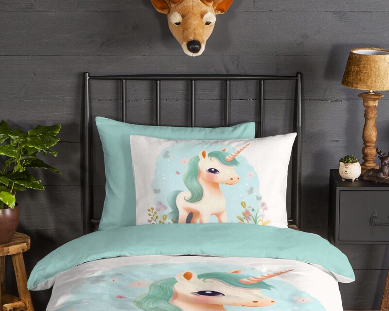 Flanellen Kinderdekbedovertrek “One” van Good Morning met eenhorn, in de kleur “Multi” is gemaakt van 100% geruwde 100% katoen/flanel. Doordat het katoen licht opgeruwd is, ontstaat er een zacht laagje. Deze warme, zachte stof is ademend en vochtabsorberend. Dit leuke kinderdekbedovertrek is een toevoeging aan iedere kinderkamer en is uitermate geschikt voor de koude wintermaanden.