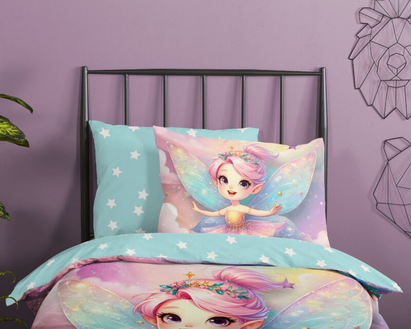 Kinderdekbedovertrek “Twinkle” van Good Morning met fee met regenboogvleugels, in de kleur “Multi” is gemaakt van 100% katoen. Deze kwaliteit is ademend, vochtabsorberend en voelt zacht en soepel aan. Dit leuke kinderdekbedovertrek is een toevoeging aan iedere kinderkamer en is geschikt voor ieder jaargetijde. Het katoenen dekbedovertrek is heerlijk koel in de zomer en geeft warmte in de winter.