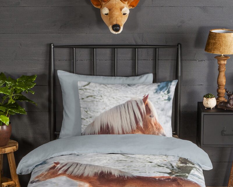 Flanellen Kinderdekbedovertrek “Scarlet” van Good Morning met haflinger paard in de sneeuw, in de kleur “Multi” is gemaakt van 100% geruwde 100% katoen/flanel. Doordat het katoen licht opgeruwd is, ontstaat er een zacht laagje. Deze warme, zachte stof is ademend en vochtabsorberend. Dit leuke kinderdekbedovertrek is een toevoeging aan iedere kinderkamer en is uitermate geschikt voor de koude wintermaanden.