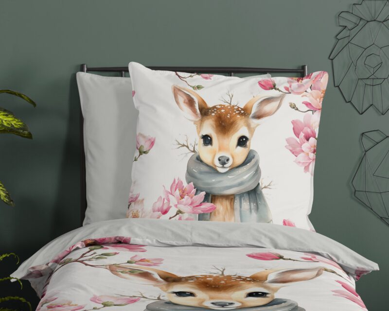 Kinderdekbedovertrek “Leone” van Good Morning met hertje met sjaal, in de kleur “Multi” is gemaakt van 100% katoen. Deze kwaliteit is ademend, vochtabsorberend en voelt zacht en soepel aan. Dit leuke kinderdekbedovertrek is een toevoeging aan iedere kinderkamer en is geschikt voor ieder jaargetijde. Het katoenen dekbedovertrek is heerlijk koel in de zomer en geeft warmte in de winter.