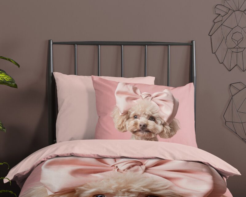 Kinderdekbedovertrek “Roxy” van Good Morning met hond/ poedel, in de kleur “Roze” is gemaakt van 100% katoen. Deze kwaliteit is ademend, vochtabsorberend en voelt zacht en soepel aan. Dit leuke kinderdekbedovertrek is een toevoeging aan iedere kinderkamer en is geschikt voor ieder jaargetijde. Het katoenen dekbedovertrek is heerlijk koel in de zomer en geeft warmte in de winter.