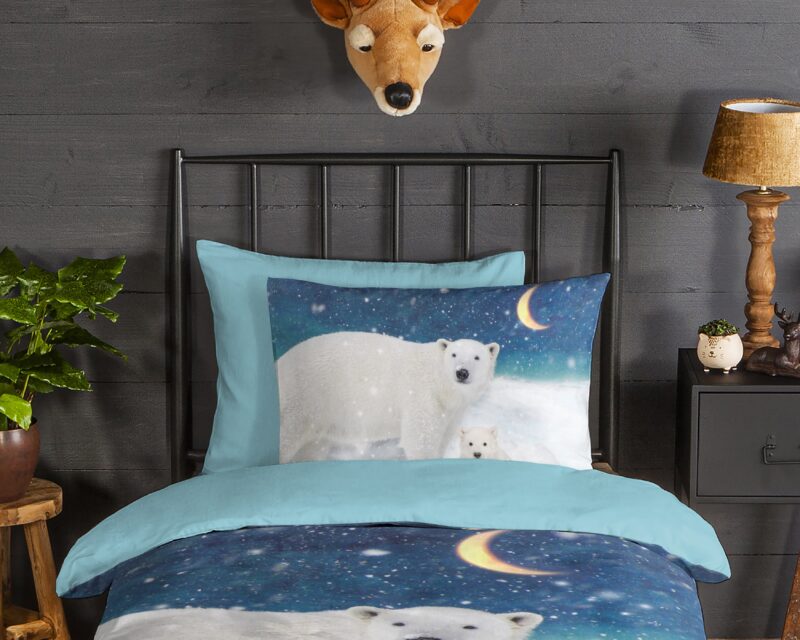 Flanellen Kinderdekbedovertrek “Polar” van Good Morning met ijsberen, in de kleur “Multi” is gemaakt van 100% geruwde 100% katoen/flanel. Doordat het katoen licht opgeruwd is, ontstaat er een zacht laagje. Deze warme, zachte stof is ademend en vochtabsorberend. Dit leuke kinderdekbedovertrek is een toevoeging aan iedere kinderkamer en is uitermate geschikt voor de koude wintermaanden.