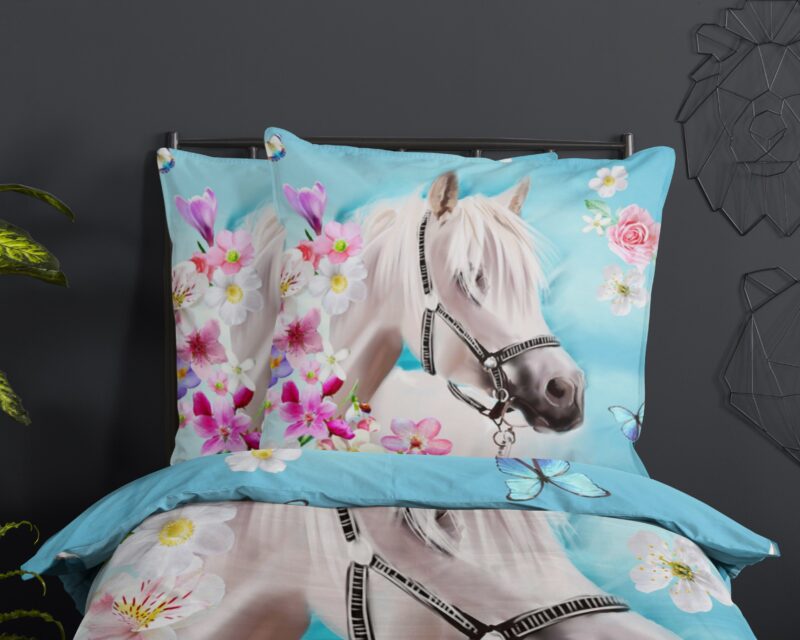 Kinderdekbedovertrek “My Beauty” van Good Morning met paard, in de kleur “Multi” is gemaakt van 100% katoen. Deze kwaliteit is ademend, vochtabsorberend en voelt zacht en soepel aan. Dit leuke kinderdekbedovertrek is een toevoeging aan iedere kinderkamer en is geschikt voor ieder jaargetijde. Het katoenen dekbedovertrek is heerlijk koel in de zomer en geeft warmte in de winter.