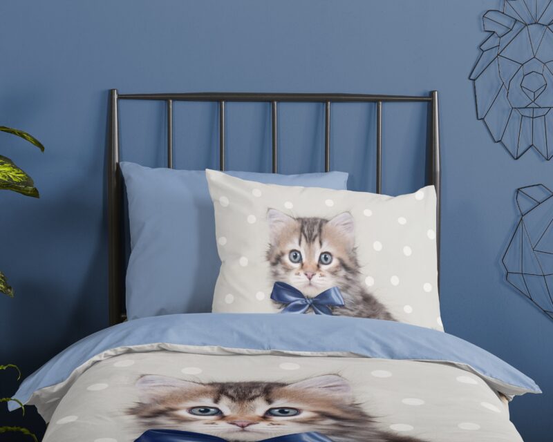 Dit betreft een 1 persoons kinderdekbedovertrek (140×200/220 cm + 1 kussensloop). Deze set bestaat uit 1 dekbedovertrek dat geschikt is voor dekbedden van 200 tot 220 cm lang en 1 kussensloop van 60×70 cm. Het dekbedovertrek heeft een dubbel doorlopende instopstrook van 20 cm en een totale lengte van circa 240 cm.