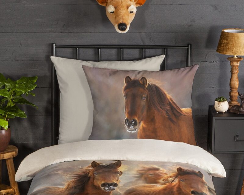 Flanellen Kinderdekbedovertrek “Ponies” van Good Morning met paarden, in de kleur “Multi” is gemaakt van 100% geruwde 100% katoen/flanel. Doordat het katoen licht opgeruwd is, ontstaat er een zacht laagje. Deze warme, zachte stof is ademend en vochtabsorberend. Dit leuke kinderdekbedovertrek is een toevoeging aan iedere kinderkamer en is uitermate geschikt voor de koude wintermaanden.