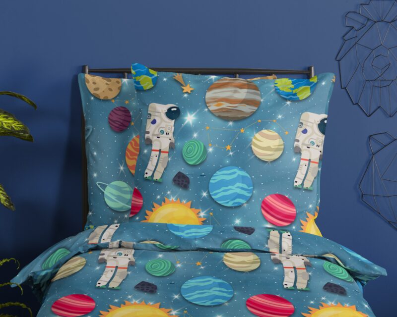 Flanellen Kinderdekbedovertrek “Spaceworld” van Good Morning met planeten / ruimte, in de kleur “Blauw” is gemaakt van 100% geruwde 100% katoen/flanel. Doordat het katoen licht opgeruwd is, ontstaat er een zacht laagje. Deze warme, zachte stof is ademend en vochtabsorberend. Dit leuke kinderdekbedovertrek is een toevoeging aan iedere kinderkamer en is uitermate geschikt voor de koude wintermaanden.