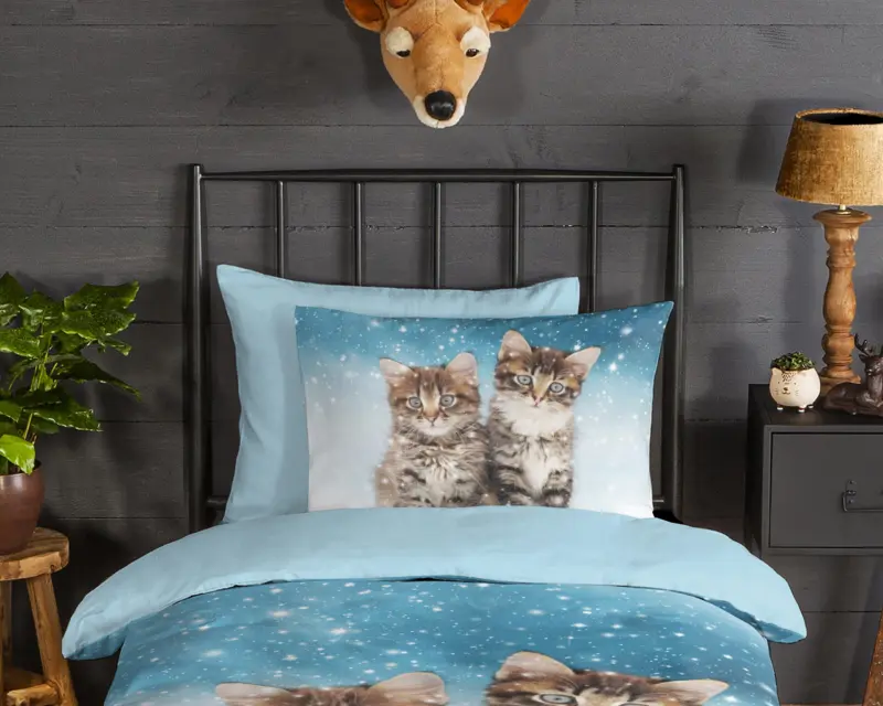 Good Morning Kinderdekbedovertrek “poezen” – Blauw – (140×200/220 cm) – Katoen Flanel