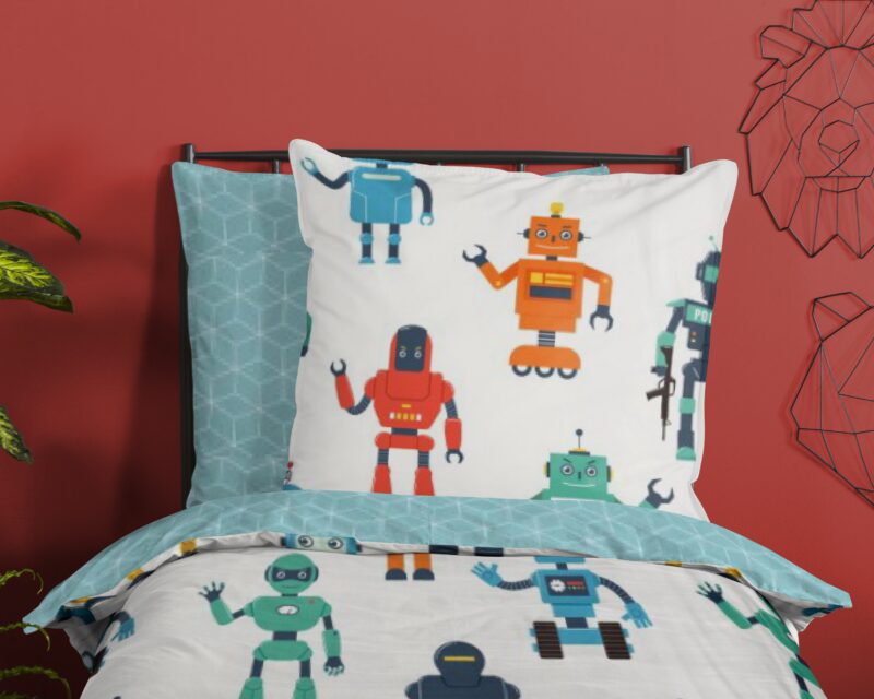 Kinderdekbedovertrek “Robots” van Good Morning met robots, in de kleur “Multi” is gemaakt van 100% katoen. Deze kwaliteit is ademend, vochtabsorberend en voelt zacht en soepel aan. Dit leuke kinderdekbedovertrek is een toevoeging aan iedere kinderkamer en is geschikt voor ieder jaargetijde. Het katoenen dekbedovertrek is heerlijk koel in de zomer en geeft warmte in de winter.