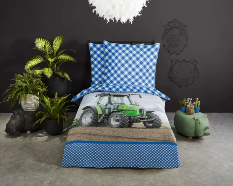 Kinderdekbedovertrek “Strong” van Good Morning met tractor, in de kleur “Groen” is gemaakt van 100% katoen. Deze kwaliteit is ademend, vochtabsorberend en voelt zacht en soepel aan. Dit leuke kinderdekbedovertrek is een toevoeging aan iedere kinderkamer en is geschikt voor ieder jaargetijde. Het katoenen dekbedovertrek is heerlijk koel in de zomer en geeft warmte in de winter.