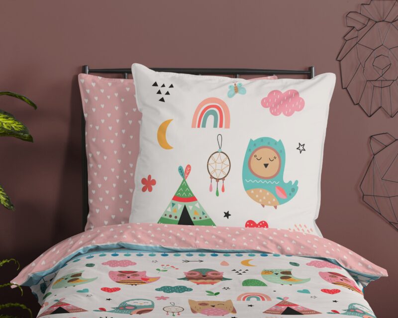 Kinderdekbedovertrek “Wise” van Good Morning met uilen in boho thema, in de kleur “Multi” is gemaakt van 100% katoen. Deze kwaliteit is ademend, vochtabsorberend en voelt zacht en soepel aan. Dit leuke kinderdekbedovertrek is een toevoeging aan iedere kinderkamer en is geschikt voor ieder jaargetijde. Het katoenen dekbedovertrek is heerlijk koel in de zomer en geeft warmte in de winter.