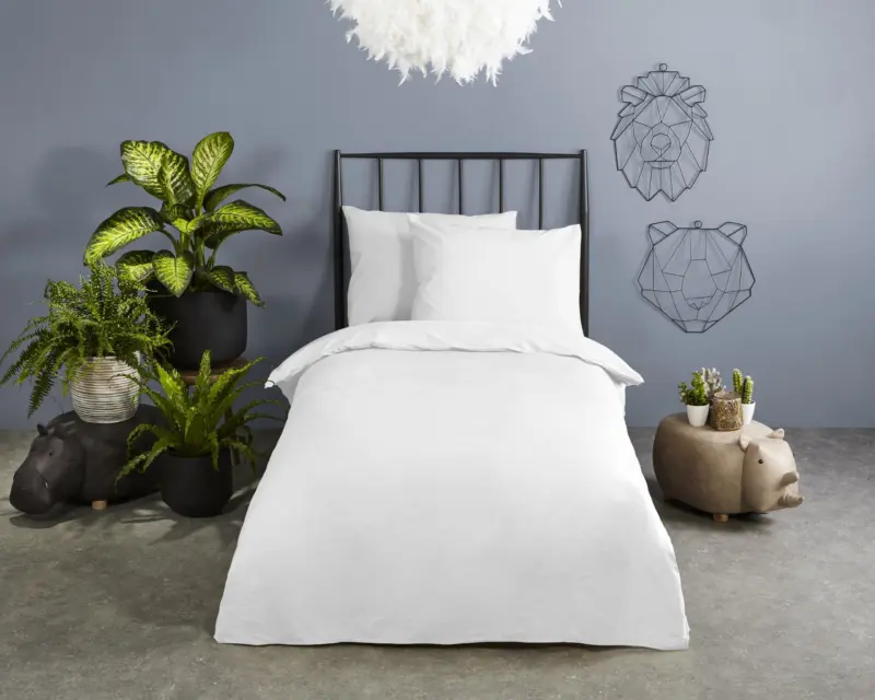 Deze set bestaat uit 1 peuter dekbedovertrek van 120×150 cm en 1 kussensloop van 60×70 cm. Het dekbedovertrek heeft een dubbel doorlopende instopstrook van 20 cm.