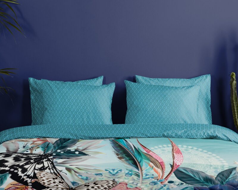 Satijnen dekbedovertrek “Maximilian” van HIP. Dit luxe dekbedovertrek met mandala’s en bloemen, in de kleur “Aqua” is een dekbedovertrek dat opvalt. Hip dekbedovertrekken zijn kleurrijk en uniek! Aan de achterkant van een Hip dekbedovertrek zit altijd een leuke, bijpassende print. Een dekbedovertrek van Hip fleurt iedere slaapkamer op!