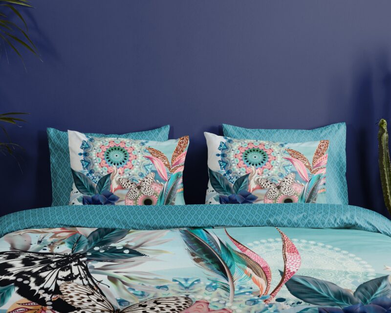 Satijnen dekbedovertrek “Maximilian” van HIP. Dit luxe dekbedovertrek met mandala’s en bloemen, in de kleur “Aqua” is een dekbedovertrek dat opvalt. Hip dekbedovertrekken zijn kleurrijk en uniek! Aan de achterkant van een Hip dekbedovertrek zit altijd een leuke, bijpassende print. Een dekbedovertrek van Hip fleurt iedere slaapkamer op!