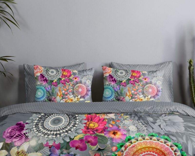 Satijnen dekbedovertrek “Olinga” van HIP. Dit luxe dekbedovertrek met mandalas en bloemen, in de kleur “Grijs” is een dekbedovertrek dat opvalt. Hip dekbedovertrekken zijn kleurrijk en uniek! Aan de achterkant van een Hip dekbedovertrek zit altijd een leuke, bijpassende print. Een dekbedovertrek van Hip fleurt iedere slaapkamer op!
