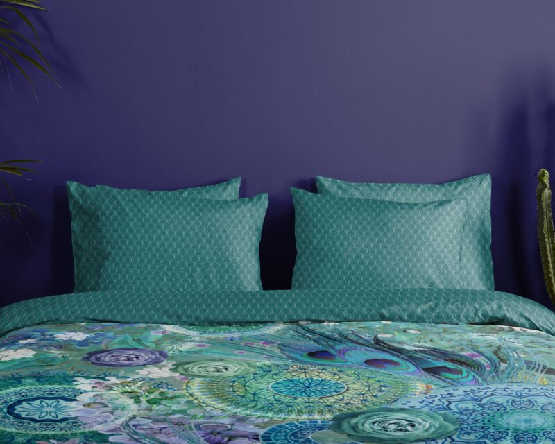 Satijnen dekbedovertrek “Kari” van HIP. Dit luxe dekbedovertrek met mandala’s en veren, in de kleur “Groen” is een dekbedovertrek dat opvalt. Hip dekbedovertrekken zijn kleurrijk en uniek! Aan de achterkant van een Hip dekbedovertrek zit altijd een leuke, bijpassende print. Een dekbedovertrek van Hip fleurt iedere slaapkamer op!