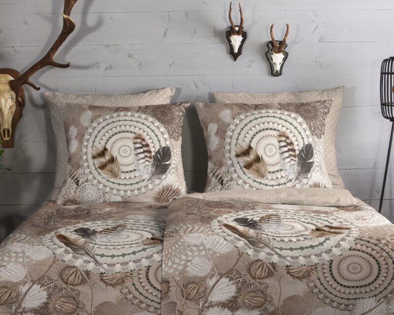 HIP Dekbedovertrek “mandala’s en veren” – Taupe – (135×200 cm) – Katoen Flanel