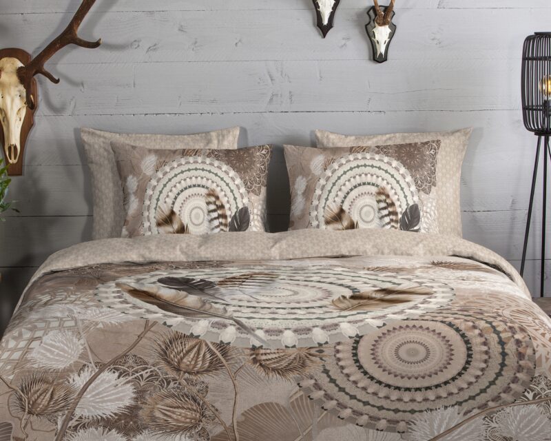 Flanellen dekbedovertrek “Ringhda” van HIP. Dit opvallende dekbedovertrek met mandala’s en veren, in de kleur “Taupe” is gemaakt van 100% geruwde 100% katoen/flanel. Hip dekbedovertrekken zijn kleurrijk en uniek! Aan de achterkant van een Hip dekbedovertrek zit altijd een leuke, bijpassende print. Een dekbedovertrek van Hip fleurt iedere slaapkamer op!