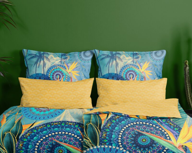 Satijnen dekbedovertrek “Novia” van HIP. Dit luxe dekbedovertrek met mandal’s en strelitzia bloemen, in de kleur “Multi” is een dekbedovertrek dat opvalt. Hip dekbedovertrekken zijn kleurrijk en uniek! Aan de achterkant van een Hip dekbedovertrek zit altijd een leuke, bijpassende print. Een dekbedovertrek van Hip fleurt iedere slaapkamer op!