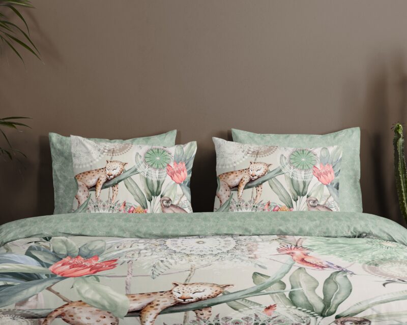 Satijnen dekbedovertrek “Wayan” van HIP. Dit luxe dekbedovertrek met tropische print en mandala’s, in de kleur “Multi” is een dekbedovertrek dat opvalt. Hip dekbedovertrekken zijn kleurrijk en uniek! Aan de achterkant van een Hip dekbedovertrek zit altijd een leuke, bijpassende print. Een dekbedovertrek van Hip fleurt iedere slaapkamer op!