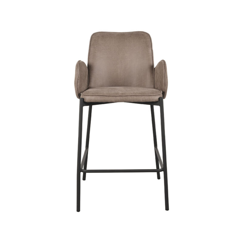 Barkruk Joni van LABEL51, uitgevoerd in taupe micro suède heeft wel een heel indrukwekkend design met zijn prachtige ronde vormen en armleuningen die achter de rugleuning doorlopen. Joni is het perfecte voorbeeld van design met maximaal comfort.