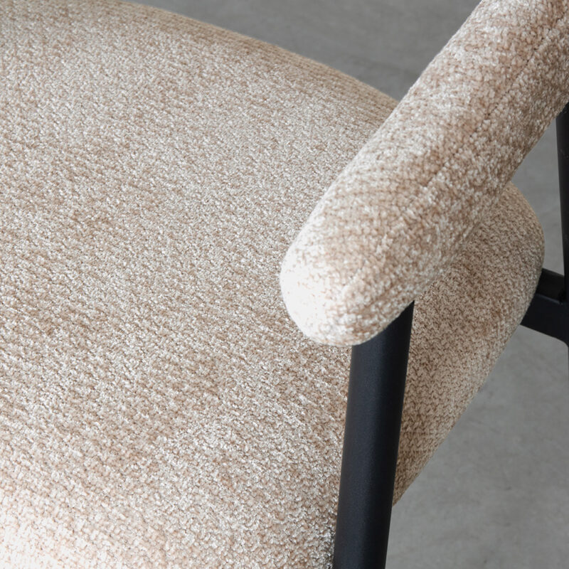 Eetkamerstoel Amaze van LABEL51 is een stijlvolle en eigentijdse stoel die moeiteloos luxe en comfort combineert. Uitgevoerd in de hoogwaardige stof Elite, straalt deze stoel elegantie uit. De kleur clay geeft de stoel een warme, aardse uitstraling die perfect aansluit bij natuurlijke en moderne interieurstijlen. De subtiele textuur van de stof voegt een extra vleugje verfijning toe, terwijl het slanke, zwarte metalen frame zorgt voor een strak en minimalistisch silhouet.