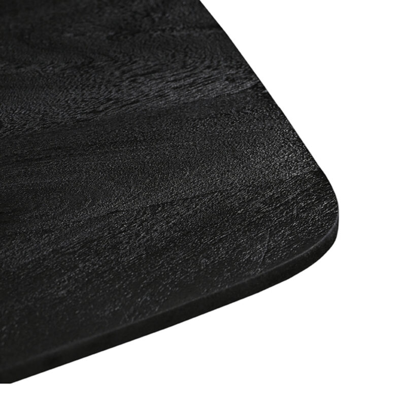 Met eettafel Blake breng je karakter en sfeer in je interieur. Deze tafel is een echte eyecatcher, uitgevoerd in prachtig Zwart Mangohout, wat zorgt voor een warme en luxe uitstraling. Het vierkante houten blad, met subtiel afgeronde hoeken, biedt een royale ruimte die perfect is voor gezellige etentjes. Of het nu gaat om een tapasavond of een tafel vol goed gevulde borrelplanken, het grote tafelblad van Blake heeft meer dan genoeg plek voor al je culinaire creaties.
