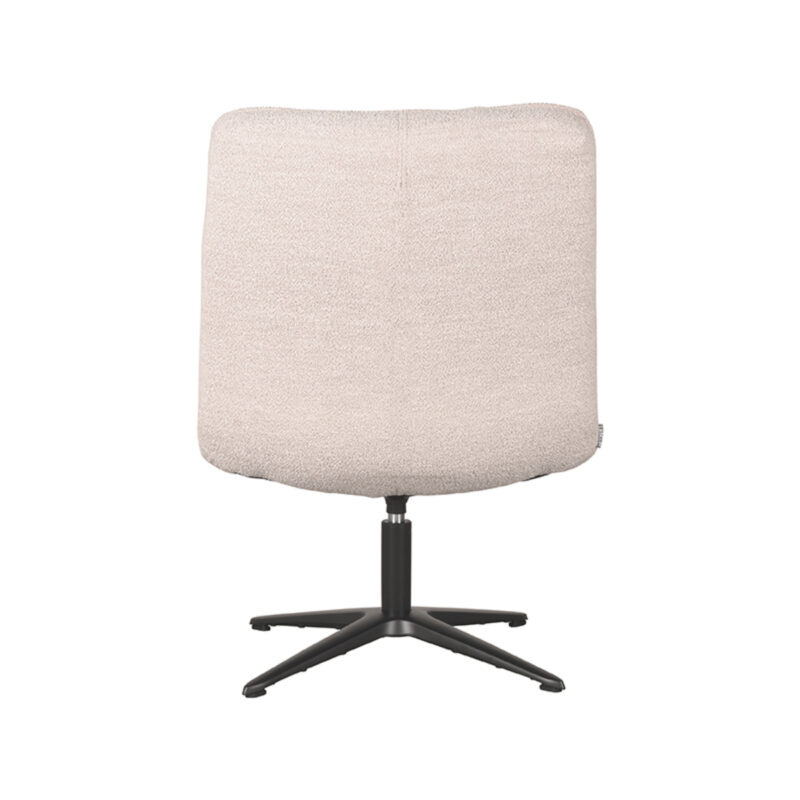 Fauteuil Vince van LABEL51 is een prachtige ergonomische, draaibare fauteuil uitgevoerd in een zachte aaibare, naturel kleurige bouclé. Vince is voorzien van strakke lijnen, mooie rondingen en een perfect comfort. Kortom: de ideale fauteuil om lekker in te relaxen.