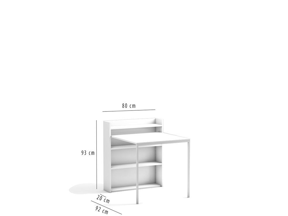 De afmetingen zijn: lengte 80 x breedte 20 x hoogte 93 cm als de tafel is ingeklapt. Als de tafel uitgeklapt is zijn de afmetingen: lengte 80 x breedte 92 x hoogte 93 cm