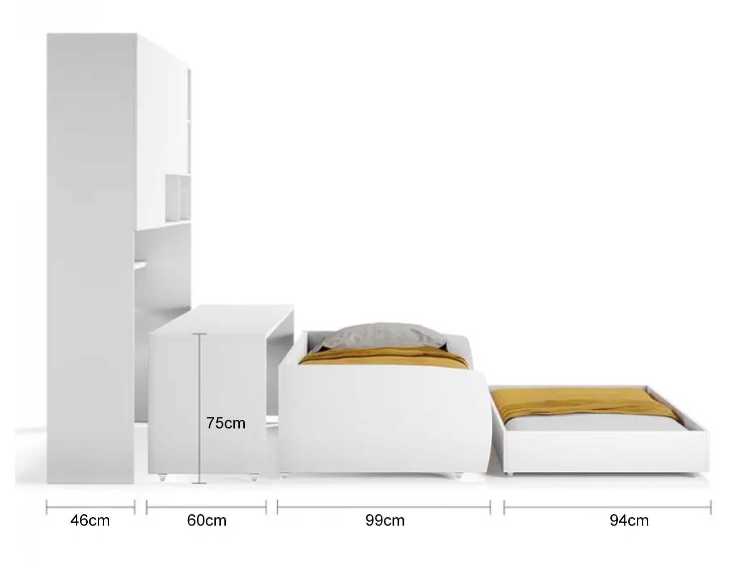 - Afmetingen onderste bed : Breedte: 90 cm Lengte: 190 cm Hoogte: 18 cm
