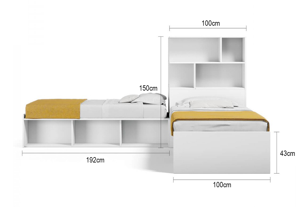 Beide bedden hebben een verborgen opbergvak onder de matras om grote spullen zoals beddengoed en seizoenskleding in op te bergen.