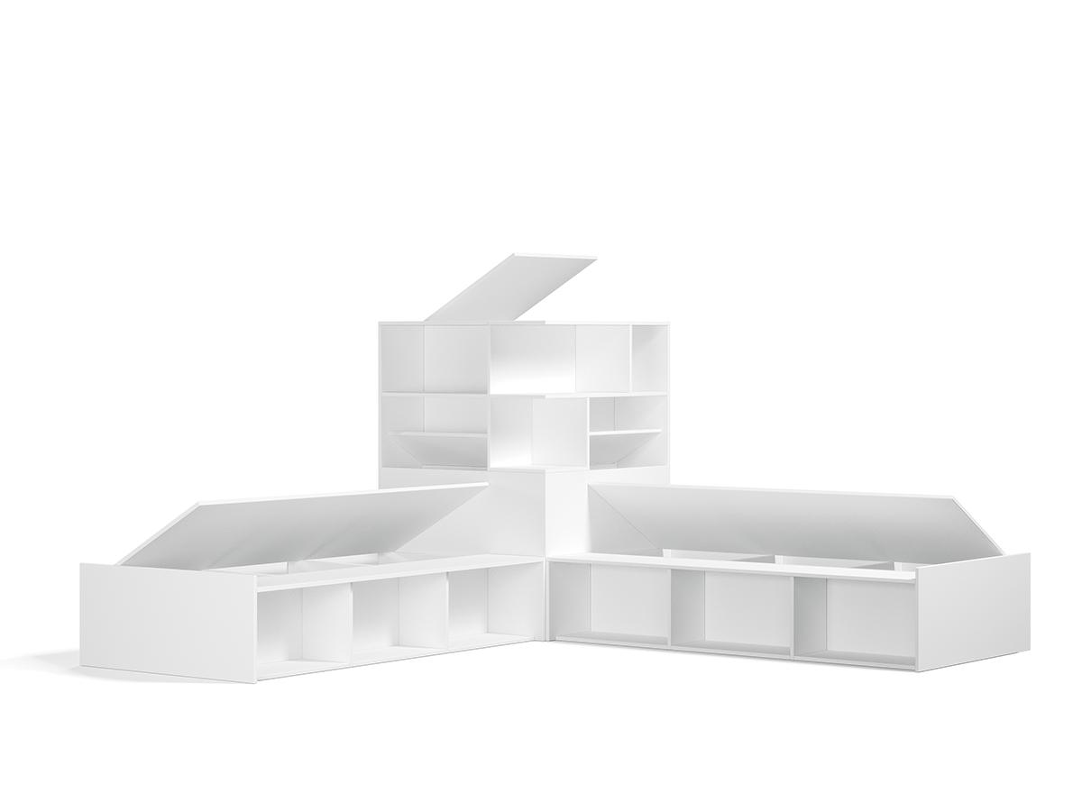 De unieke L-vormige configuratie van het Booth Corner Bed gebruikt anders niet bruikbare ruimte door toe te voegen: