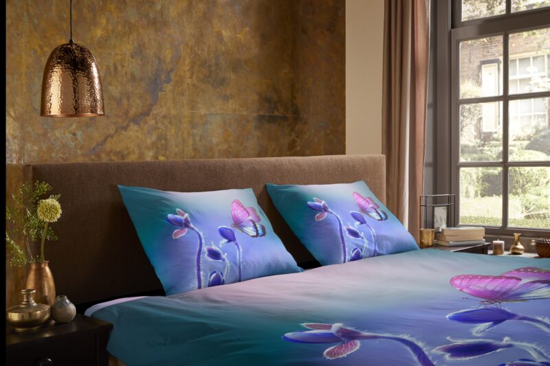 Dekbedovertrek “Davine” van Pure met bloemen en een vlinder, in de kleur “Multi” is gemaakt van 100% polyester/microfiber. Het is een prettige stof, dat soepel om je heen valt en ook nog eens licht van gewicht is. Het is geschikt voor ieder jaargetijde en door de lichte glans heeft het een luxe uitstraling. Na het wassen is deze stof snel droog en kreukt niet tot nauwelijks waardoor strijken (vrijwel) niet nodig is.