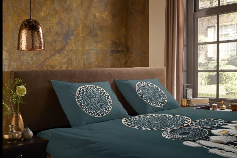 Dekbedovertrek “Catch” van Pure met dromenvanger, in de kleur “Petrol” is gemaakt van 100% polyester/microfiber. Het is een prettige stof, dat soepel om je heen valt en ook nog eens licht van gewicht is. Het is geschikt voor ieder jaargetijde en door de lichte glans heeft het een luxe uitstraling. Na het wassen is deze stof snel droog en kreukt niet tot nauwelijks waardoor strijken (vrijwel) niet nodig is.