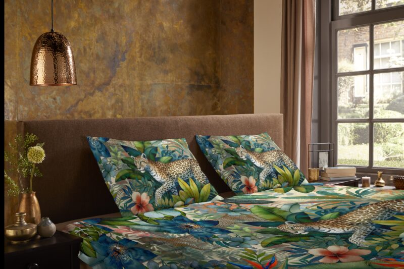 Dekbedovertrek “Raza” van Pure met luipaard met bladeren, in de kleur “Multi” is gemaakt van 100% polyester/microfiber. Het is een prettige stof, dat soepel om je heen valt en ook nog eens licht van gewicht is. Het is geschikt voor ieder jaargetijde en door de lichte glans heeft het een luxe uitstraling. Na het wassen is deze stof snel droog en kreukt niet tot nauwelijks waardoor strijken (vrijwel) niet nodig is.