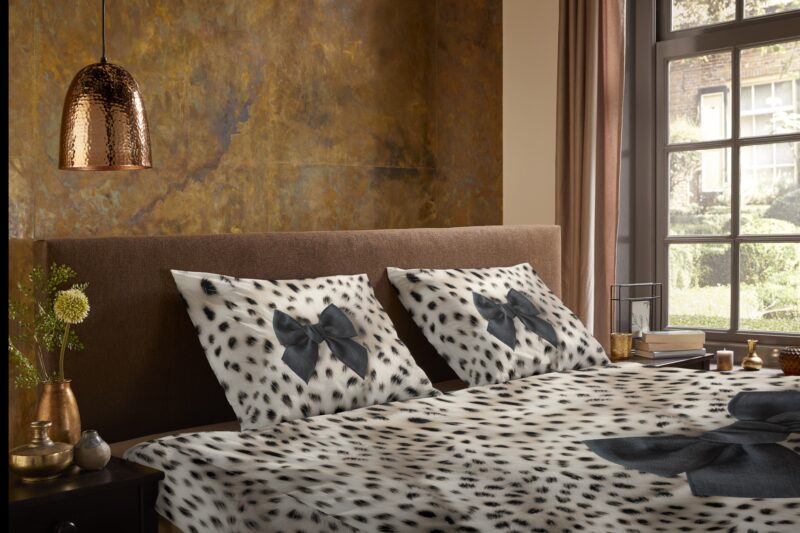 Dekbedovertrek “Ragna” van Pure met luipaardprint met strik, in de kleur “Wit” is gemaakt van 100% polyester/microfiber. Het is een prettige stof, dat soepel om je heen valt en ook nog eens licht van gewicht is. Het is geschikt voor ieder jaargetijde en door de lichte glans heeft het een luxe uitstraling. Na het wassen is deze stof snel droog en kreukt niet tot nauwelijks waardoor strijken (vrijwel) niet nodig is.