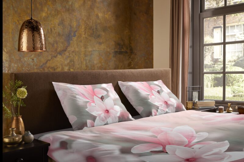 Dekbedovertrek “Magna” van Pure met magnolia bloemen, in de kleur “Roze” is gemaakt van 100% polyester/microfiber. Het is een prettige stof, dat soepel om je heen valt en ook nog eens licht van gewicht is. Het is geschikt voor ieder jaargetijde en door de lichte glans heeft het een luxe uitstraling. Na het wassen is deze stof snel droog en kreukt niet tot nauwelijks waardoor strijken (vrijwel) niet nodig is.