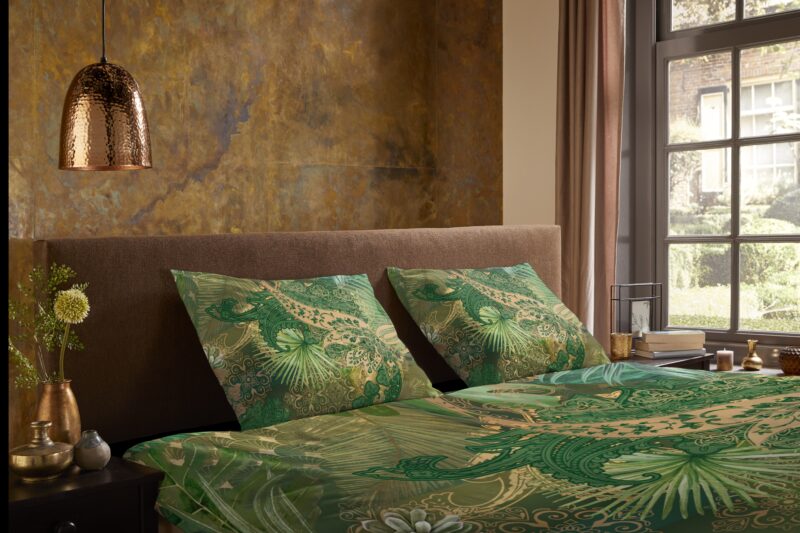 Dekbedovertrek “Louise” van Pure met oosterse/ arabische print, in de kleur “Groen” is gemaakt van 100% polyester/microfiber. Het is een prettige stof, dat soepel om je heen valt en ook nog eens licht van gewicht is. Het is geschikt voor ieder jaargetijde en door de lichte glans heeft het een luxe uitstraling. Na het wassen is deze stof snel droog en kreukt niet tot nauwelijks waardoor strijken (vrijwel) niet nodig is.