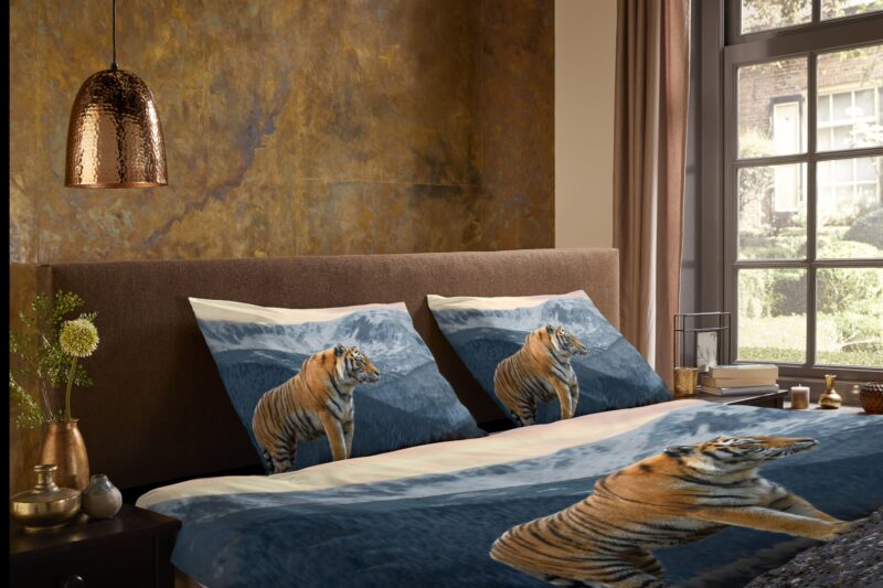 Dekbedovertrek “Sky” van Pure met tijger in de bergen, in de kleur “Multi” is gemaakt van 100% polyester/microfiber. Het is een prettige stof, dat soepel om je heen valt en ook nog eens licht van gewicht is. Het is geschikt voor ieder jaargetijde en door de lichte glans heeft het een luxe uitstraling. Na het wassen is deze stof snel droog en kreukt niet tot nauwelijks waardoor strijken (vrijwel) niet nodig is.